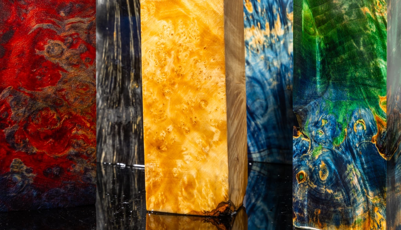 スタビライズドウッドは、天然の木に樹脂をしみ込ませて固めた木材です。