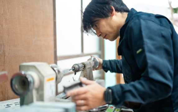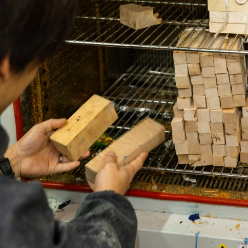 選定した木材を乾燥させ、樹脂を浸透させるスタビライズド加工を行います。その後、用途に合わせた成形・研磨を行い、一本ずつ丁寧に仕上げます。オーダーメイドのため、この工程には一定の制作期間が必要です。